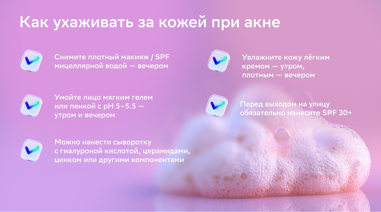Вывод: Умываться дважды в день — достаточно. Агрессивные скрабы и пилинги при акне только травматизируют и без того чувствительную кожу.