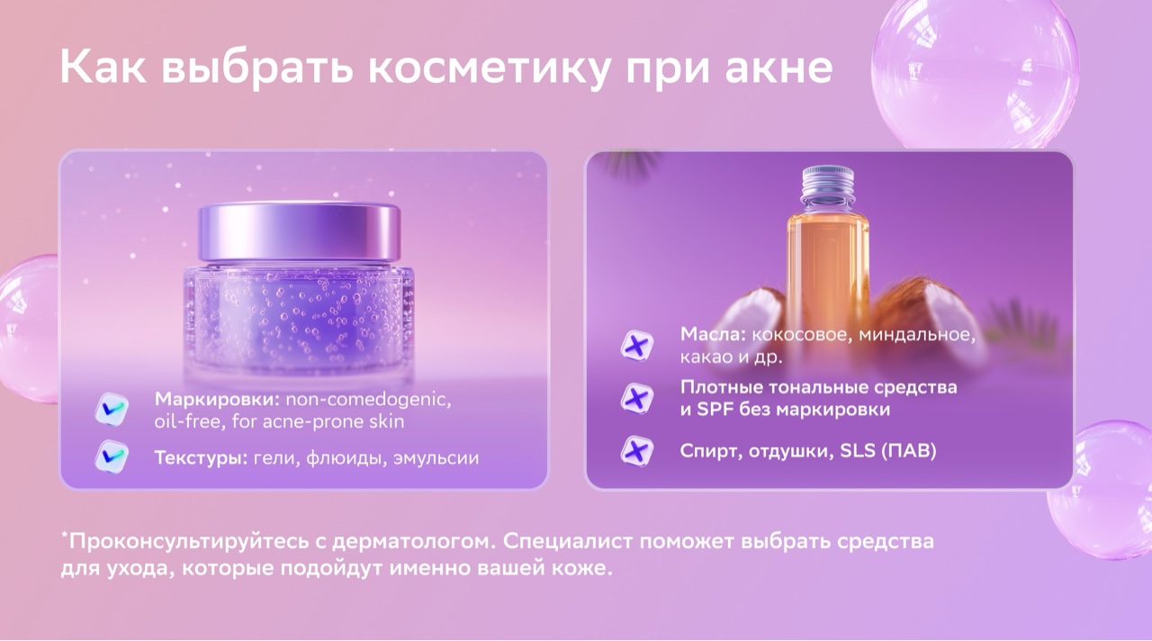 Вывод: Не отказывайтесь от ухода. Просто выбирайте косметику и уходовые средства с некомедогенным составом.