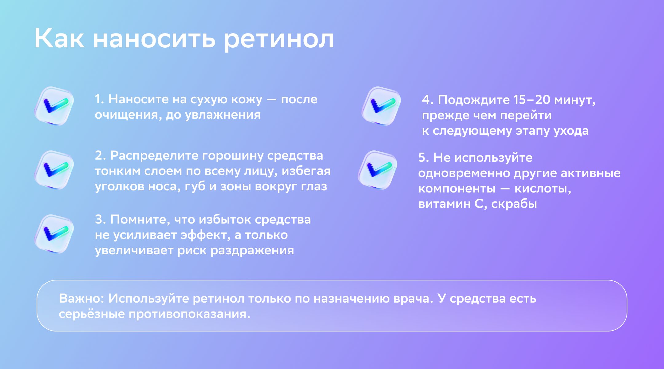 Ретинол — активный компонент. Его эффективность и безопасность зависят от правильного применения.