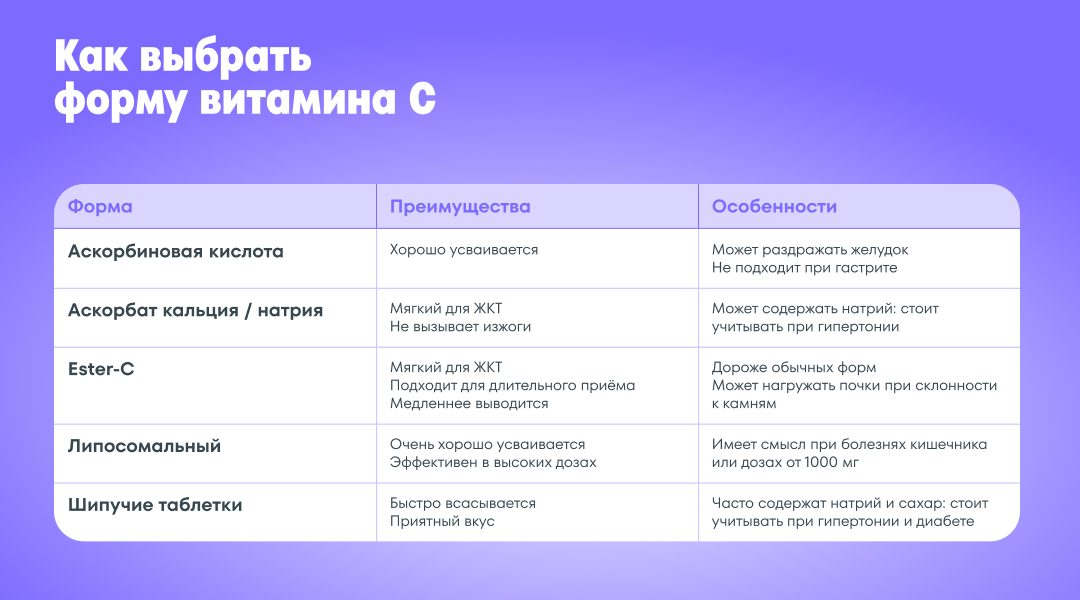 Важно: витамин С может поддержать иммунитет, состояние кожи и помочь усвоить железо. Но если появляются симптомы, которые вызывают беспокойство, не стоит заниматься самодиагностикой. Обратитесь к специалисту.